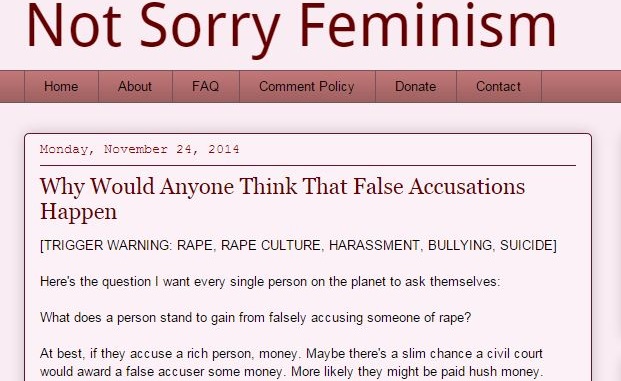 The question posed above by the zealous, young author of Not Sorry Feminism isn’t, of course, a question at all; it’s an indictment. She means how dare anyone think false accusations happen. What problematizes the writer’s rhetorical-question-cum-admonition is that it has a very obvious answer: The reason people think false accusations “happen” (so to speak) is that they do.