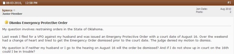 It’s often fairly remarked that feminists tend not to acknowledge restraining order abuse, let alone express resentment toward female offenders. There are exceptional instances, however, as you’ll see below.