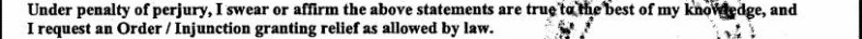 The only provision the law or the court makes for discouraging false testimony (some motives for which are here) is this one, which predictably appears at the very end of the application form: