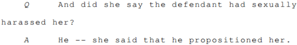 Then Marks’s client, the prosecuting witness, who told her boss that I had “propositioned” her, told the court this: