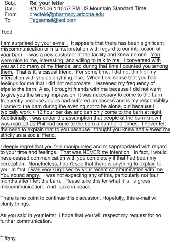 Where Ray’s son, Phil Bredfeldt, was while his wife was indulging herself at my home in 2005 has incidentally never been explained. I don’t recall a single conversation I ever had with Tiffany Bredfeldt, including up to and past midnight, being interrupted by a phone call (“Uh, Honey, are you coming home?”). If Phil Bredfeldt is homosexual, that would explain a lot, both about his conduct and the keenness of his family’s interest in keeping up appearances.