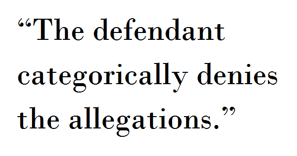 Here’s what you inevitably hear instead: “My client categorically denies the charges.”
