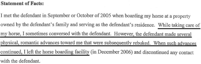 To relate the background as briefly as possible, Tiffany Bredfeldt had nightly lingered outside of my house for months in 2005 and taunted me with references to her body and underwear, apparently relishing the attention. Then she lied to the police and the court to conceal her misconduct when I learned she was married and demanded an explanation—and she has lied over and over since, as the testimony I’ve included below shows plainly.