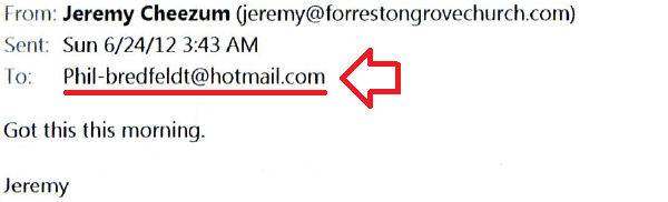 This message was communicated to me by email on the first day of what would become 12 years of legal abuse by a woman named Tiffany Bredfeldt and her husband, Phil Bredfeldt, sister- and brother-in-law of Rev. Jeremy Cheezum.