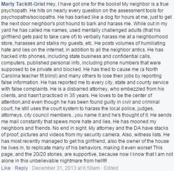 “She has stalked me since I met her. I’ve kept a dated log of all of the instances when she appeared someplace where I was. I’ve told her to leave me alone but she won’t. She says I’m her ‘destiny.’”