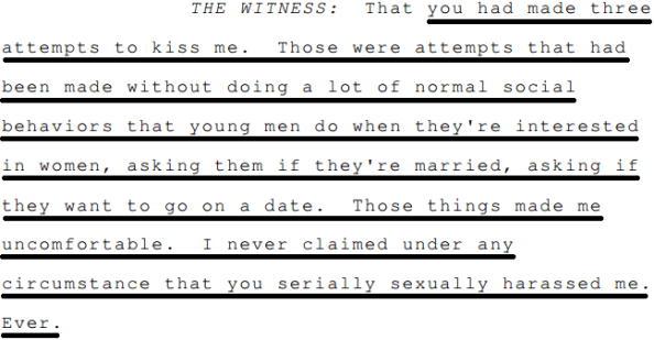 The latitude granted to judges in this arena of law is virtually boundless, as the politicking behind so-called “women’s law” intended it to be. A single statement from the list that heads this post, delivered persuasively enough, could suffice to make any number of allegations “stick” (whether relevant or not). Or repeated emphatic claims of terror and violation could. Or the testimony of a crony witness. Or a real or faked series of text messages or emails. Or a real or spoofed series of calls on a phone (which, if real, could have been about anything).