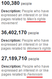 Notice that 200 to 400 times greater interest in bonding with people concerned with women’s rights has been shown than interest in bonding with people concerned with men’s rights. That’s a lot…A LOT a lot.
