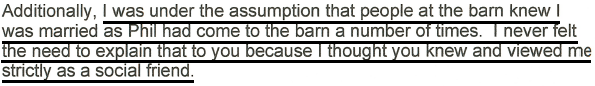 The message was communicated by email by Mrs. Witmer’s niece and her husband, a guy the niece had never mentioned, and it was sent to a police officer with whom the couple were on the phone as it was sent to me. An order of the court forbidding me from talking to the husband, a man I had never met, was petitioned earlier the same day by the niece.